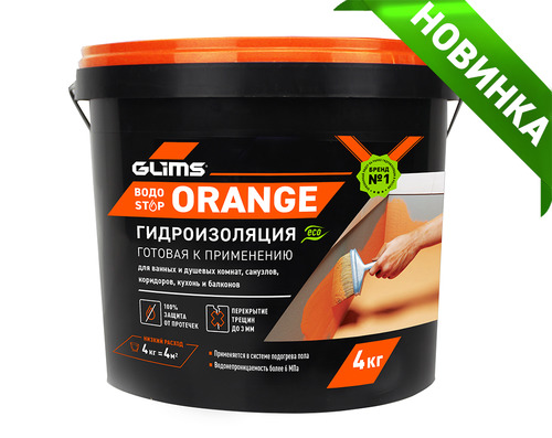 GLIMS®ВодоStop ORANGE, которая станет надёжным барьером для разрушающей силы влаги в ванной комнате, кухне, коридоре… Гидроизоляция