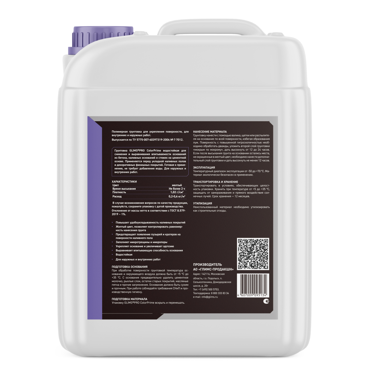 GLIMS®ColorPrime наносится на цементные основания, процесс набора прочности которых завершен (не менее 28 суток). С основания необходимо предварительно удалить цементное молочко, рыхлые слои, остатки старых покрытий, масляные пятна и прочие загрязнения. Основание должно быть сухим и прочным.