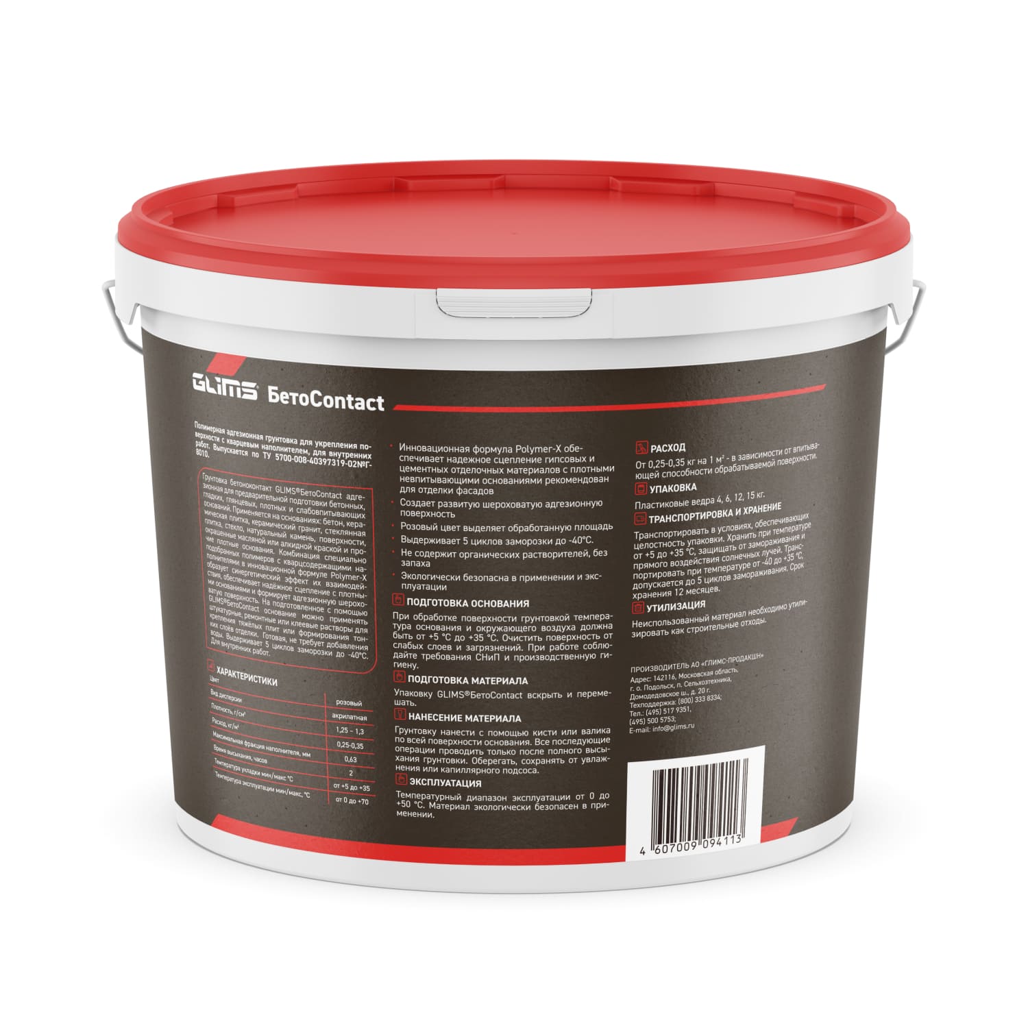 Грунтовка бетоноконтакт GLIMS®БетоContact адгезионная для предварительной подготовки бетонных, гладких, глянцевых, плотных и слабовпитывающих оснований. Применяется на основаниях: бетон, керамическая плитка, керамический гранит, стеклянная плитка, стекло, натуральный камень, поверхности, окрашенные масляной или алкидной краской и прочие плотные основания. Комбинация специально подобранных полимеров с кварцсодержащими наполнителями в инновационной формуле Polymer-X образует синергетический эффект их взаимодействия, обеспечивает надёжное сцепление с плотными основаниями и формирует адгезионную шероховатую поверхность. На подготовленное с помощью GLIMS®БетоContact основание можно применять штукатурные, ремонтные или клеевые растворы для крепления тяжёлых плит или формирования тонких слоёв отделки. Готовая, не требует добавления воды. Выдерживает 5 циклов заморозки до -40°С. Для внутренних работ.