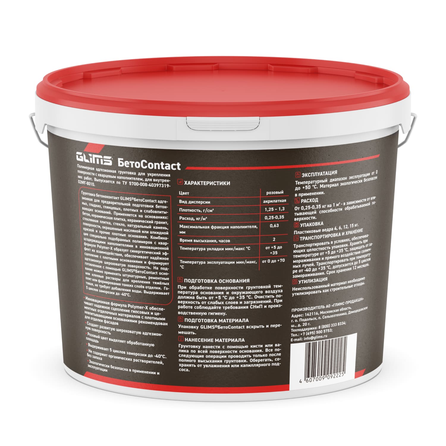 Грунтовка бетоноконтакт GLIMS®БетоContact адгезионная для предварительной подготовки бетонных, гладких, глянцевых, плотных и слабовпитывающих оснований. Применяется на основаниях: бетон, керамическая плитка, керамический гранит, стеклянная плитка, стекло, натуральный камень, поверхности, окрашенные масляной или алкидной краской и прочие плотные основания. Комбинация специально подобранных полимеров с кварцсодержащими наполнителями в инновационной формуле Polymer-X образует синергетический эффект их взаимодействия, обеспечивает надёжное сцепление с плотными основаниями и формирует адгезионную шероховатую поверхность. На подготовленное с помощью GLIMS®БетоContact основание можно применять штукатурные, ремонтные или клеевые растворы для крепления тяжёлых плит или формирования тонких слоёв отделки. Готовая, не требует добавления воды. Выдерживает 5 циклов заморозки до -40°С. Для внутренних работ.