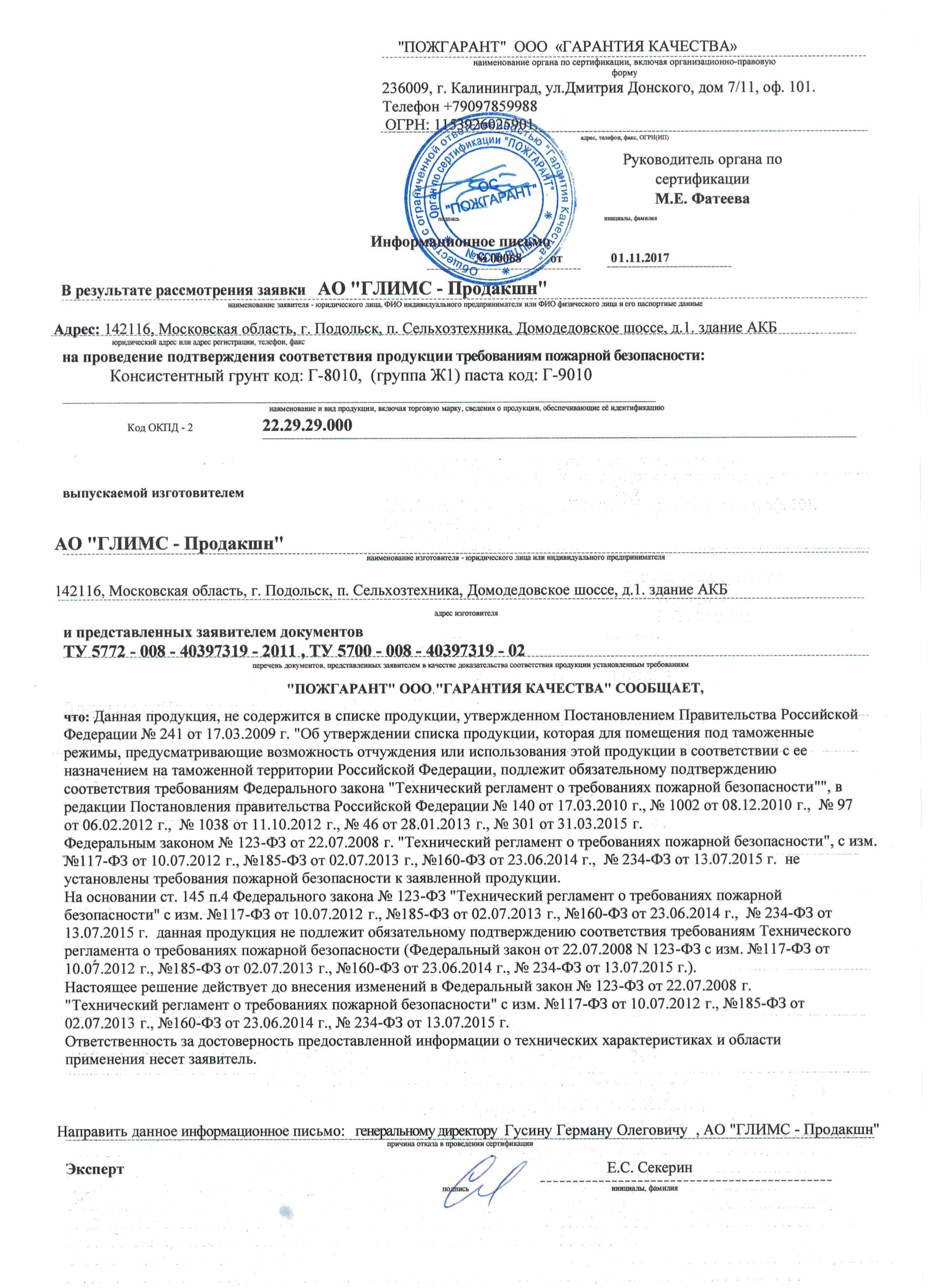 Отказное письмо БетоContact Г-8010